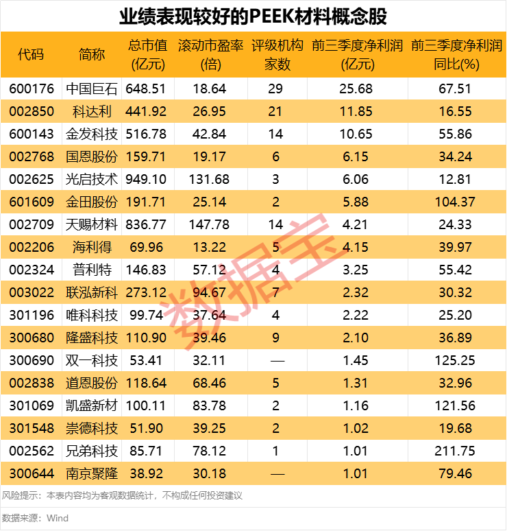 业绩表现较好的PEEK材料概念股出炉业绩表现较好的PEEK材料概念股出炉