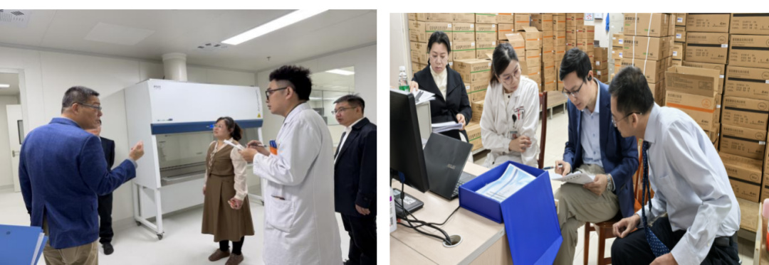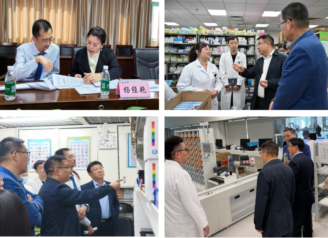 汇报会后,在杨经艳秘书长和陈钢副秘书长分别带领下,专家们分别前往卫国路院区与绿岛湖院区,实地走访门急诊药房、住院药房、中药房、药库、临床药学科和静配中心等区域。通过现场查看、访谈、资料审核及流程追踪等方式,对制度执行、工作流程、质量指标、人员培训和信息化支撑能力开展全面细致的核查。