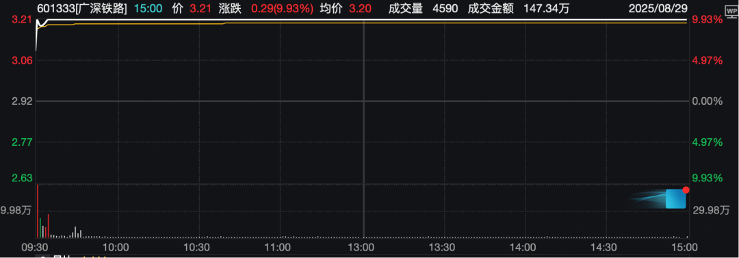 广深铁路在发布今年上半年业绩后,股价也实现10%涨停。