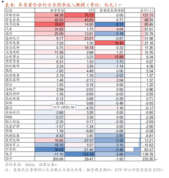 【资金·众寡】融资净流入与ETF净申购,新发基金规模回升。融资资金前四个交易日合计净流入187.7亿元;新成立偏股类公募基金230.8亿份,较前期上升24.1亿份;ETF净申购,对应净流入22.2亿元。融资资金净买入电力设备、非银金融、有色金属等;券商ETF申购较多,信息技术ETF赎回较多。重要股东净减持规模缩小,计划减持规模下降。