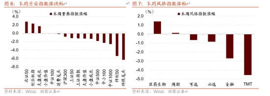 本周A股市场整体走势偏弱,主要因:(1)阅兵前后的市场博弈较为激烈,部分投资者对近期超涨的方向(如国产算力等)进行了大幅止盈;(2)美股虽维持高位震荡,但不少科技龙头均出现明显的破位情况,间接影响市场风偏;(3)市场缩量明显,且场内呈现出多题材轮动上涨的特征,使投资者不易聚焦。