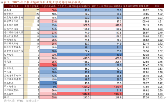 综上所述,2025年中报上修与创新高领域主要集中在TMT、中高端制造和医药领域,推荐关注数字芯片设计、通信网络设备及器件、游戏、底盘与发动机系统、其他专用设备、锂电池、化学制剂、黄金等。