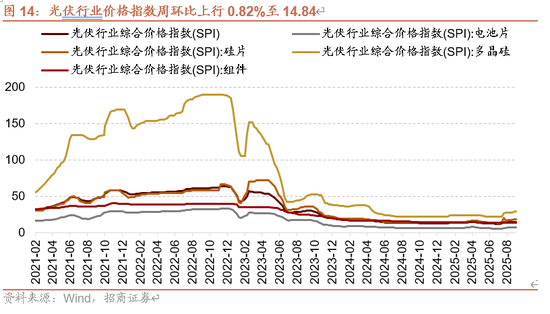 光伏价格指数周环比上行,其中电池片、组件、硅片、多晶硅价格指数均上行。截至9月1日,光伏行业价格指数周环比上行0.82%至14.84,组件价格指数与上周持平为13.72,电池片价格指数周环比上行0.30%至6.73,硅片价格指数周环比上行0.89%至18.06,多晶硅价格指数周环比上行2.18%至29.10。